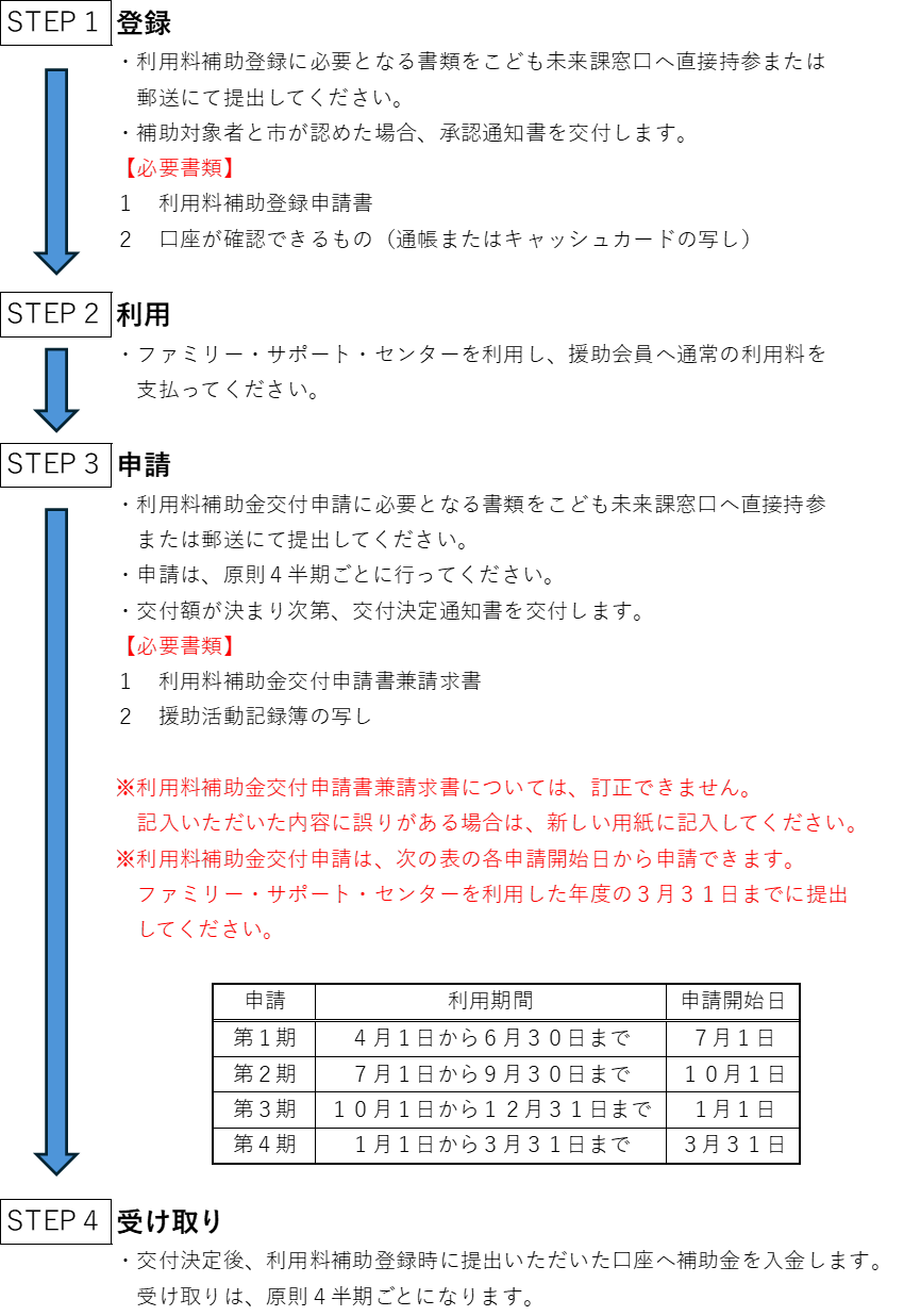 多子世帯、多胎児世帯、ひとり親世帯、生活保護受給世帯及び市民税非課税世帯の依頼会員及び両方会員が、援助会員から援助を受けた場合、利用料の半額を補助するものです。