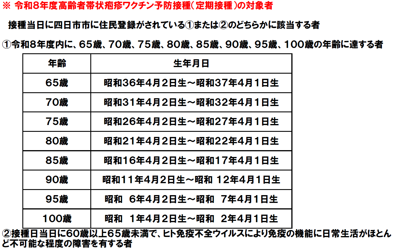 ただし、これまでに(2)の四日市市の費用補助事業を利用した場合は、定期接種の対象外となります。
